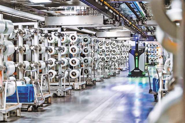 國(guó)際復(fù)材玻纖智能制造生產(chǎn)線拉絲車間。(受訪者供圖)
