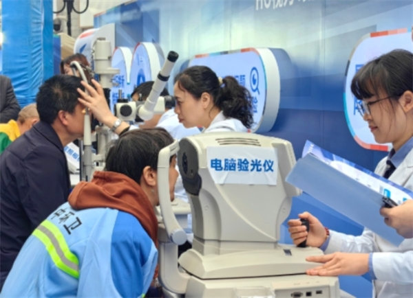 現(xiàn)場設立公益“光明守護區(qū)”,視光師們通過眼健康檢測設備等專業(yè)儀器,為解放碑現(xiàn)場的游客朋友、市民朋友以及城市一線工作者們,提供免費視力檢測及眼健康檢查。檢查項目涵蓋遠視力、近視力測試,以及眼底病變篩查、眼表疾病篩查和白內障初步篩查等。
