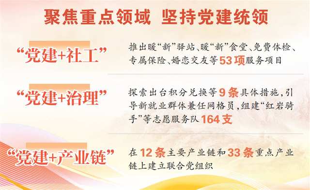 近年來,重慶堅持黨建統(tǒng)領(lǐng),聚焦產(chǎn)業(yè)鏈升級、新就業(yè)群體服務(wù)、基層治理創(chuàng)新等重點領(lǐng)域,積極探索“黨建強鏈、服務(wù)暖心、治理增效”的實踐路徑。