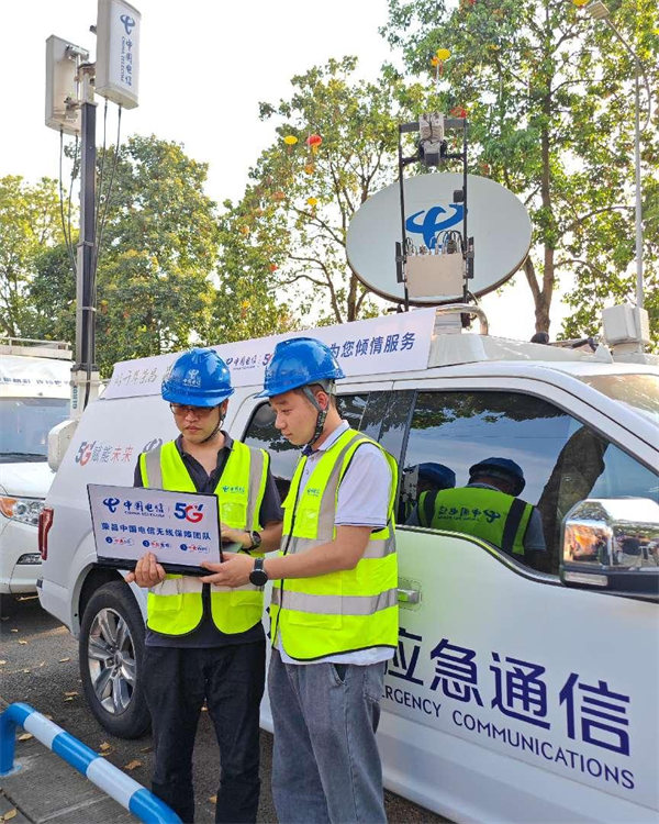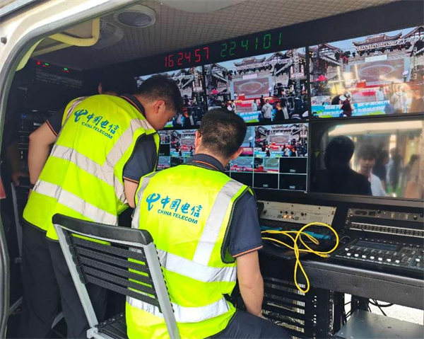 作為此次活動的通信保障主力單位及網(wǎng)絡(luò)直播的唯一承接單位,中國電信榮昌分公司(以下簡稱:榮昌電信)提前做好充分準備,制定詳細的通信保障方案,并成立了由技術(shù)骨干組成的專項保障團隊。直播開始前,公司提前針對活動區(qū)域的18個5G扇區(qū)和14個4G扇區(qū)進行擴容和優(yōu)化部署,確保高密度人流區(qū)域通信暢通。在夏布小鎮(zhèn)現(xiàn)場特別部署了應(yīng)急通信車和應(yīng)急方艙,并設(shè)立“現(xiàn)場值守+后臺監(jiān)控”的雙重保障機制,實時監(jiān)測網(wǎng)絡(luò)運行狀態(tài),及時調(diào)整網(wǎng)絡(luò)資源配置,確保了通信質(zhì)量和網(wǎng)絡(luò)穩(wěn)定性。