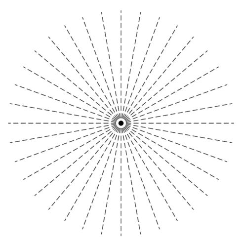 取下眼鏡,將手機(jī)移至距離眼睛大約40厘米的位置(約一臂距離),用手遮住一只眼,單眼凝視上方散光表10秒,如果各線(xiàn)條深淺粗細(xì)一致,則沒(méi)有散光。反之可能眼睛有散光。