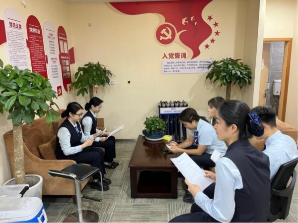 南坪長(zhǎng)生橋支行黨支部開(kāi)展張富清精神專題學(xué)習(xí)。建行重慶市分行供圖
