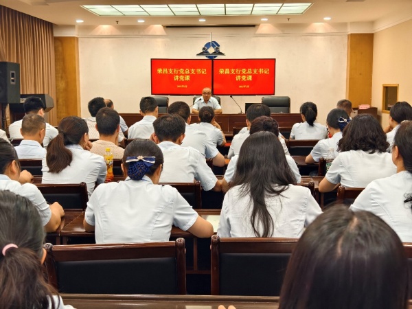 榮昌支行黨總支書(shū)記講授專題黨課。建行重慶市分行供圖