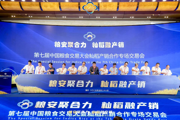 5月28日,第七屆中國(guó)糧食交易大會(huì)秈稻產(chǎn)銷(xiāo)合作專(zhuān)場(chǎng)交易會(huì)在重慶舉行。此次會(huì)議以“糧安聚合力,秈稻融產(chǎn)銷(xiāo)”為主題,來(lái)自湖北、廣西、浙江、廣東、貴州、江西、四川、安徽、重慶等糧食和物資儲(chǔ)備局相關(guān)負(fù)責(zé)人出席會(huì)議。此次會(huì)議是落實(shí)“糧食安全是‘國(guó)之大者’”重要指示,旨在搭建服務(wù)國(guó)家糧食安全、促進(jìn)產(chǎn)銷(xiāo)對(duì)接、實(shí)現(xiàn)資源整合的重要平臺(tái)。