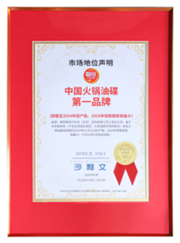 近日,重慶老字號(hào)品牌馨田火鍋油碟通過(guò)全球企業(yè)增長(zhǎng)咨詢機(jī)構(gòu)弗若斯特沙利文(Frost & Sullivan)認(rèn)證,獲評(píng)“連續(xù)3年中國(guó)銷量第一”“中國(guó)火鍋油碟第一品牌”。該認(rèn)證基于對(duì)中國(guó)內(nèi)地火鍋油碟市場(chǎng)的研究,按2022—2024年每年于全國(guó)范圍內(nèi)的火鍋油碟銷量計(jì),確認(rèn)馨田在火鍋油碟品類中的市場(chǎng)領(lǐng)先地位。