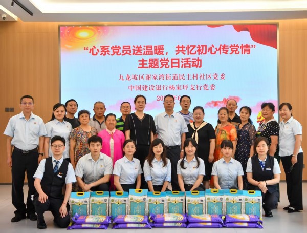 楊家坪支行黨委與九龍坡區(qū)謝家灣街道民主村社區(qū)黨委聯(lián)合開(kāi)展“心系黨員送溫暖 共憶初心傳黨情”主題黨日活動(dòng)。建行重慶市分行供圖
