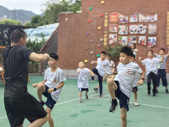 跟著教官學(xué)習(xí)敬軍禮、踢正步!全市首個“軍娃托管站”開課