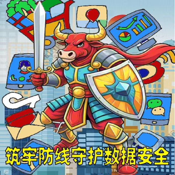 一只強(qiáng)壯威武的牛衛(wèi)士,身披鎧甲,以穩(wěn)固姿態(tài)昂然屹立。它一手持劍,一手握盾,象征力量、守護(hù)與可靠。牛的特質(zhì)——堅(jiān)韌、警惕、群防,對(duì)應(yīng)網(wǎng)絡(luò)安全特性:防御、保護(hù)、實(shí)時(shí)檢測(cè)、快速恢復(fù)及全民聯(lián)防。背景融入微信、抖音、微博等社交與支付軟件界面。整體象征生肖牛衛(wèi)士以忠誠(chéng)之姿,牢不可破地守護(hù)著網(wǎng)絡(luò)安全與數(shù)字支付防線。