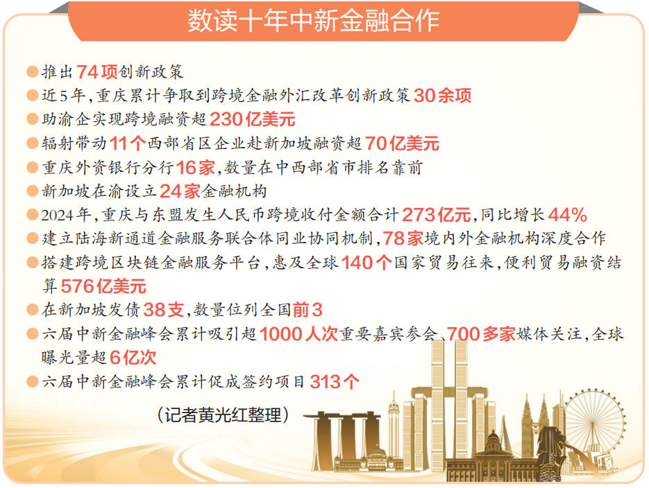 10年來,重慶打通中新跨境融資通道,助渝企累計實現(xiàn)跨境融資超230億美元;在新加坡發(fā)行債券38支、數(shù)量位列全國前3;輻射帶動廣西、四川等11個西部省區(qū)企業(yè)赴新加坡融資超70億美元。