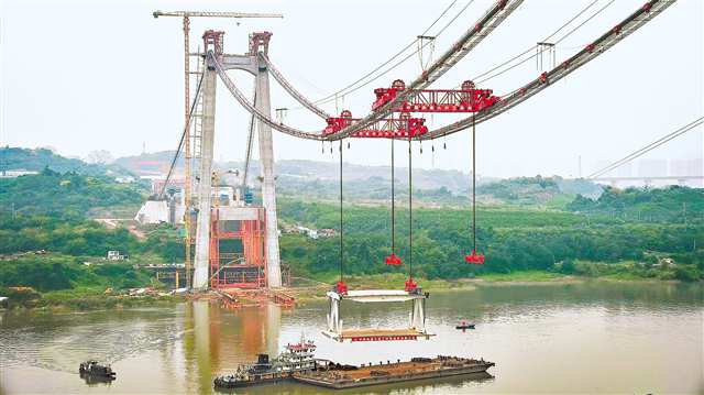 黃桷沱長江大橋首節(jié)鋼桁梁吊裝完成