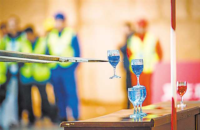 比賽分為叉車、正面吊、裝載機、集裝箱拖車(集卡)、場橋5個項目,都是港口行業(yè)的代表性操作項目,吸引來自果園港埠、江津港、涪陵港、萬州港等11家單位的選手參加。其中,叉車項目中的“拋”硬幣“疊”高腳杯,吊具“秀”平衡等高難度操作,讓人驚嘆不已。(記者 申曉佳 張錦輝 攝影報道/視覺重慶)