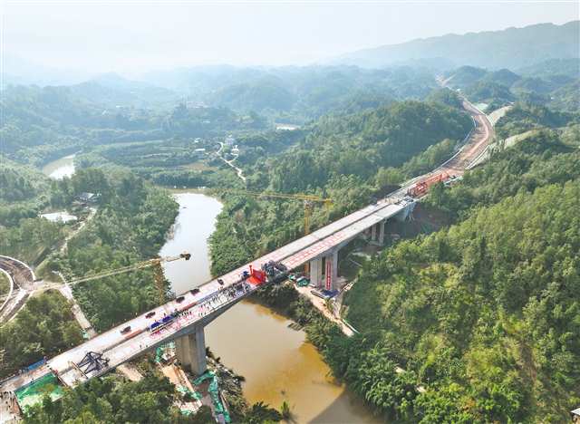 11月21日,重慶至赤水至敘永高速公路(重慶段)筍溪河大橋順利合龍。該大橋位于江津區(qū)嘉平鎮(zhèn)寒坡村,全長276米,是我市首座波形鋼腹板連續(xù)剛構(gòu)橋。