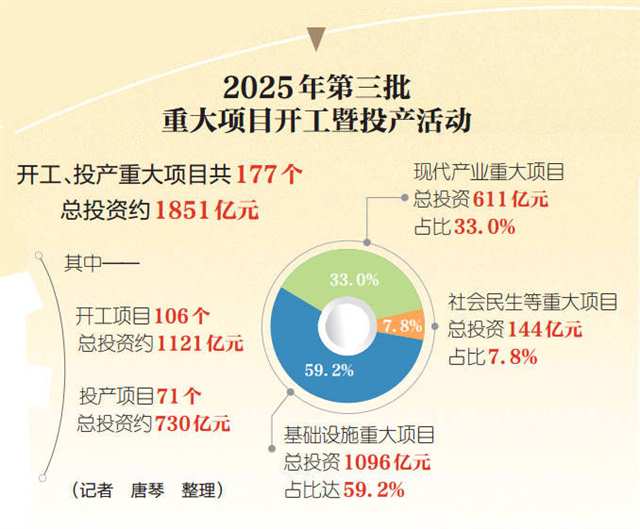 活動當(dāng)天,全市開工、投產(chǎn)的基礎(chǔ)設(shè)施重大項目總投資1096億元、占比達(dá)59.2%。