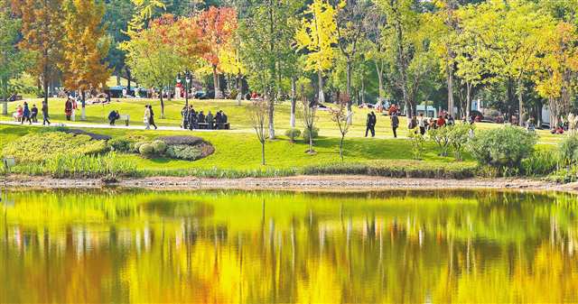11月26日,大渡口區(qū)心湖公園,彩林與湖泊相映成趣,不少市民在湖邊散步、休閑。近日,各地色彩斑斕的樹木將山城裝扮得美麗如畫。沐著暖陽,市民紛紛外出游玩,感受冬日的溫馨與浪漫。(記者 尹詩語 攝/視覺重慶)